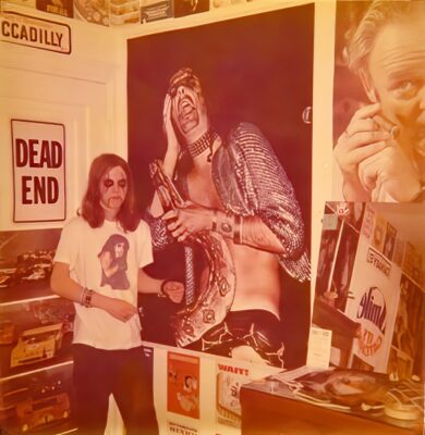 As I stood there dreaming in the immensity of it trying to figure out a way to join them, some guy came up from behind and started talking to me. I recognized him as one of them — in fact he seemed like one of the leaders of the leaderless pack. He lived out the other end of the school and had to walk through the whole building to get to the cool kids’ end. He was super friendly, and he knew his music. I had long hair and wore a knee-length patched jean jacket so he figured I was probably at least cool enough to talk to for a minute. I’m sure we riffed on Alice Cooper, and I told him about the concert that summer, and what other bands I was listening to, and somehow I guess I passed the test, because after 5 or 10 minutes of us talking, he said, “Well, let’s go out,” and pushed the door open! Suddenly I was walking across the untraversable ground with Joey Myles, probably the coolest guy in the whole cool kids crowd. Suddenly I was in.