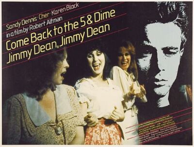 Come Back to the 5 and Dime Jimmy Dean, Jimmy Dean — 1982; Robert Altman; Karen Black, Sandy Dennis — and Cher & Kathy Bates both in one of their first film roles before they would each go on to win Best Actress Oscars. Phenomenal performances by all. Brilliant story & script — adapted from the short-lived Broadway play — filmed during the production with Altman directing both and utilizing the entire Broadway cast. Shot (in 16mm!) on a replica single room set of a Woolworth five-&-dime store. And thank gawd he did this so it can live on forever. Masterfully handled in flashbacks (using wall mirrors) between 1955 and a James Dean fan club reunion 20 yrs later. Smart & gutsy cinematography. Obvious echoes in the female-centric comedy-drama Steel Magnolias (1989) — but way more powerful and engaging to these eyes. In fact probably the most powerful of any all-woman-cast movie I’ve ever seen. A phenomenal portrayal about how people lie to themselves . . . and everyone around them . . . including god.